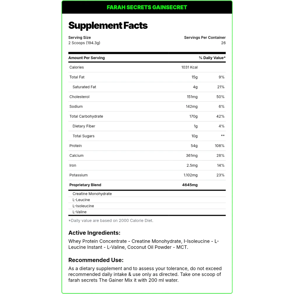 Farah Secret GAIN SECRET.-26 Servings.-5kg.