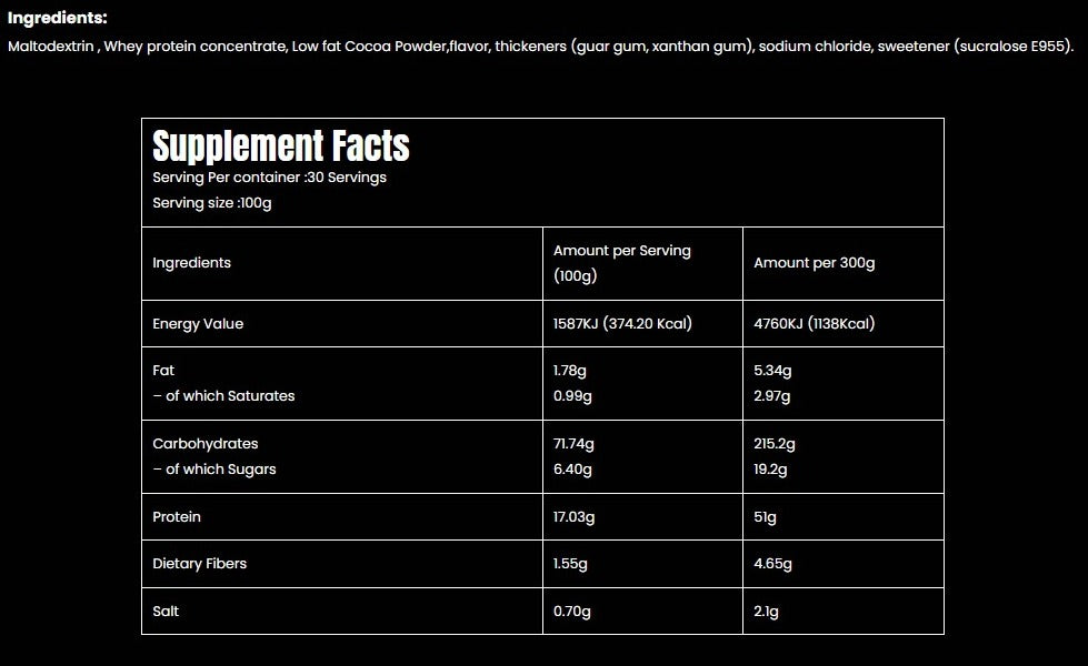Big is the weight gainer every one needs to add lean muscle mass while increasing size, with no fat gain. It’s the ideal ratio between high biological value whey protein concentrate 85 and clean carbohydrate source, low in fat and sugar. Unlike other products full of amino acids ( amino spike ) and sugars, BIG is low in fat and Low in cholesterol and no added sugars. We only use premium ingredients that work. Lets Get BIG with BIG!