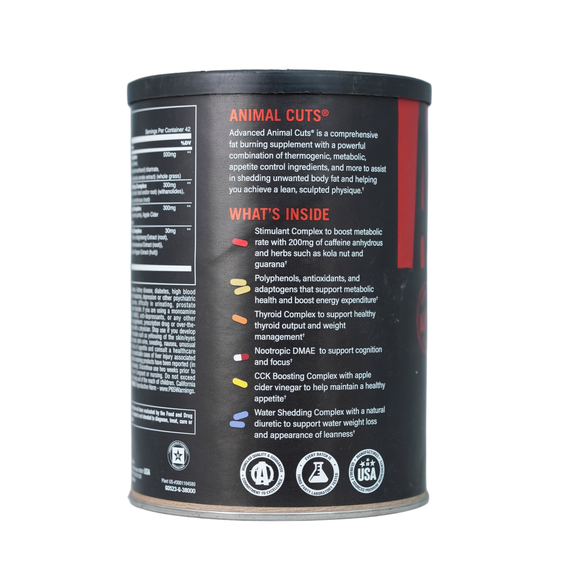 "Our next level shredding supplement with 17 fat burning ingredients kick starts your metabolism, suppresses appetite, helps muscles look more defined, supports brain health, and helps with weight management. Animal Cuts is an all-in-one thermogenic fat burner formulated for men and women who want to naturally shed excess fat and water weight.