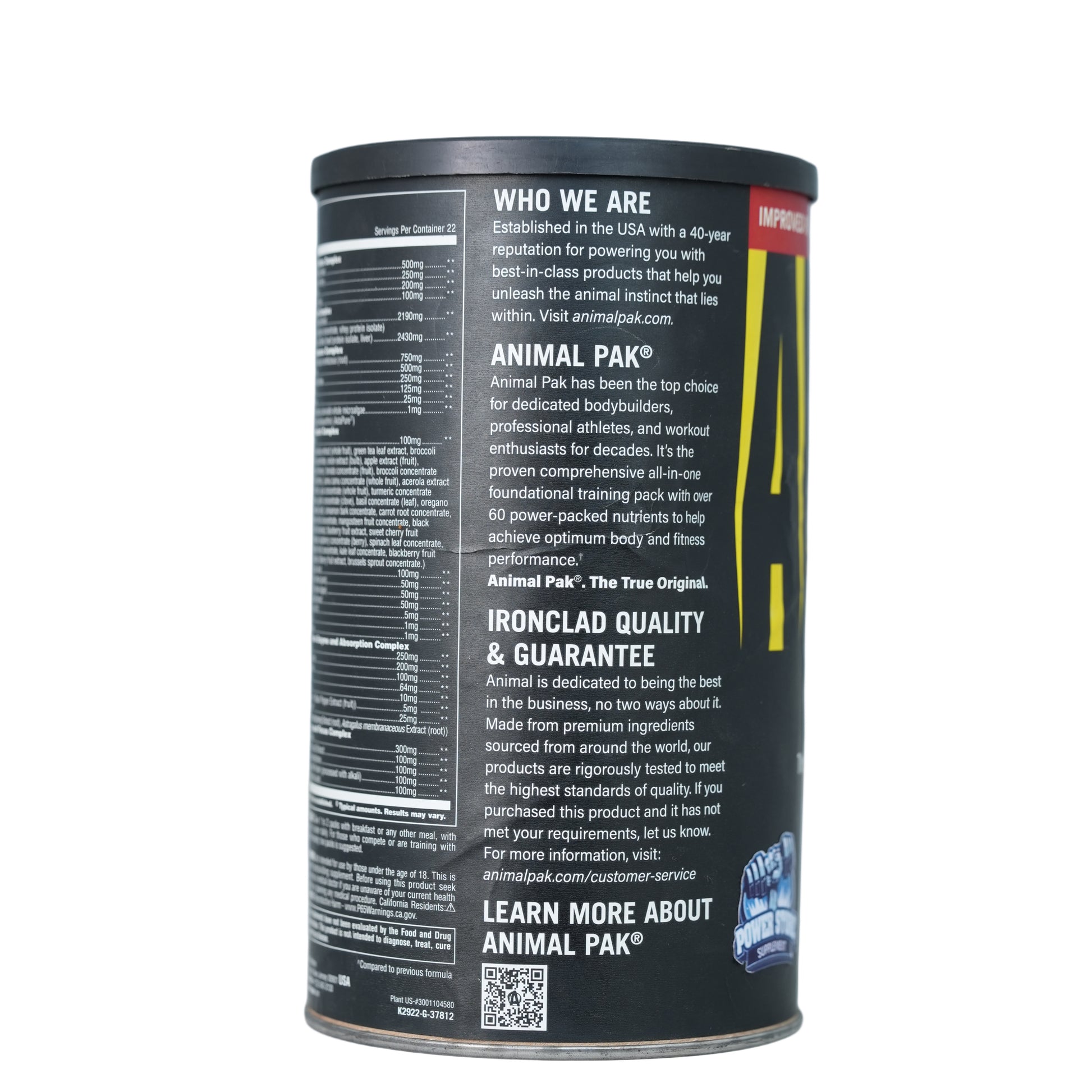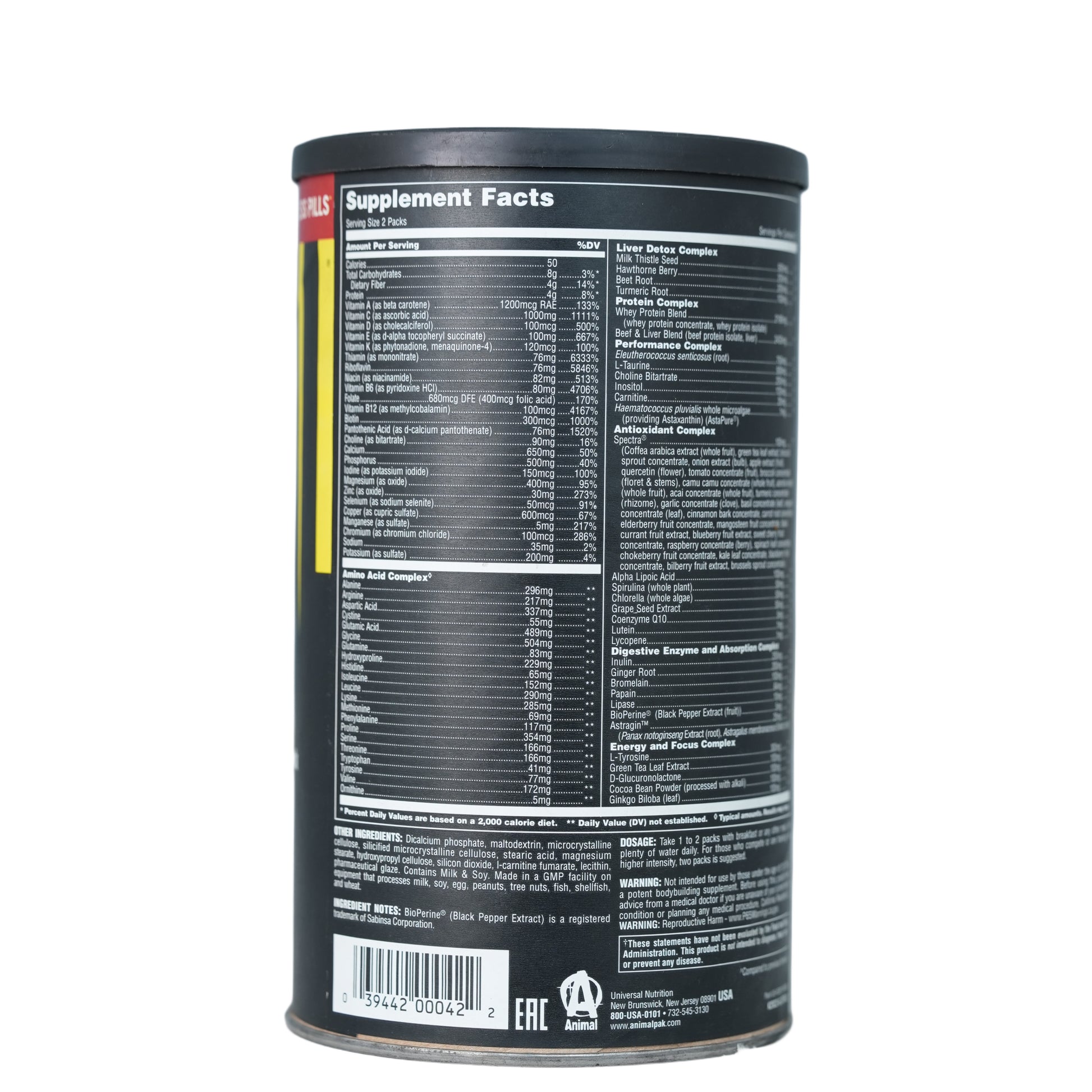 "Animal Pak is complete nutrition loaded with 85+ highly absorbable nutrients that enhances training sessions and boosts energy in daily life through an efficient combination of vitamins, minerals, amino acids, antioxidants, digestive enzymes, carnitine, herbs and more. More than a multivitamin, Animal Pak fills your nutritional gaps ensuring you are primed for muscle growth and optimum performance as you chase your fitness goals.